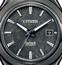 This limited-edition model is being released to celebrate the first anniversary of the relaunch of the Series 8 collection of mechanical watches. The case with its eye-catching two-piece bezel is made of stainless steel finished with Duratect DLC*1. The all-black color scheme is pure simplicity with bold hands and indices. The dial is made of lightweight and durable carbon, the same material used in aircraft and high-performance sports cars, and a first for the Series 8 collection. This limited-edition model has other special features - it is the first Series 8 watch with a transparent case back that showcases the movement of the balance wheel and the rotor inside.